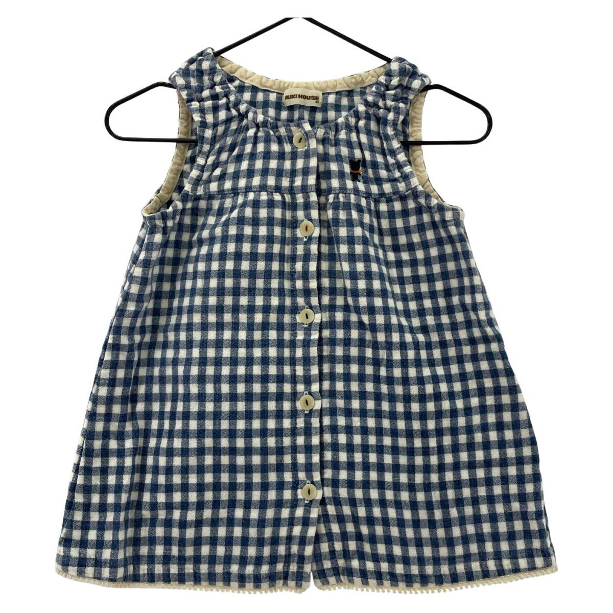 - miki house ミキハウス ギンガムチェック ノースリーブ ワンピース sizeベビー80/ネイビー×アイボリー ゆうパケットOK