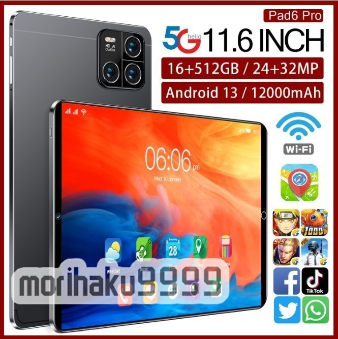 > 2023新作 タブレット PC 11.6インチ Android 13.0 Wi-Fiモデル 液晶 simフリー GMS認証 軽量 在宅勤務 ネット授業 8GB+128GB ブラック