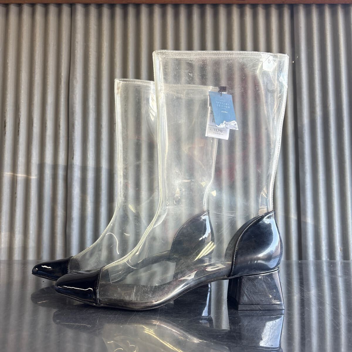 > 新品 ZARA SPECIAL EDITION スケルトン ロングブーツ 25.5cm 39 レディース ザラ スニーカー シューズ 長靴 脚長 細見え 訳あり ③