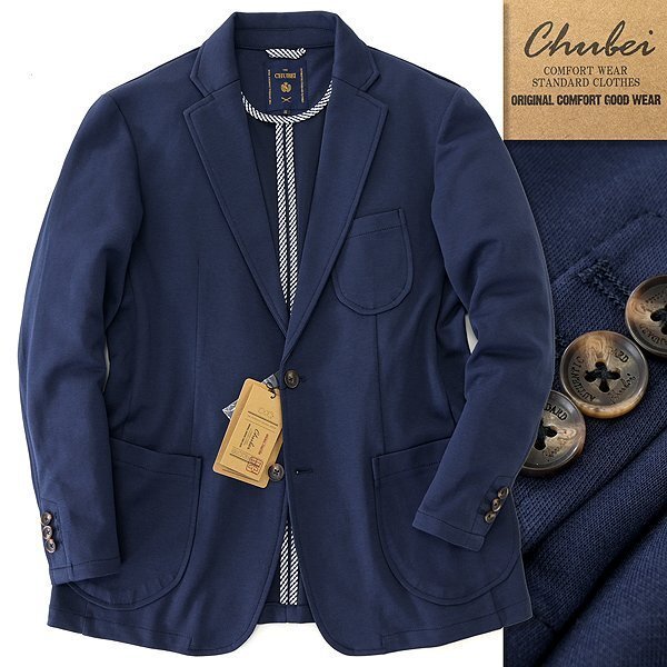- 新品 チュウベイ ジャージー テーラード ジャケット M 紺 【CH1444214_79_M】 春夏 メンズ CHUBEI 洗える ストレッチ ニット ブレザー