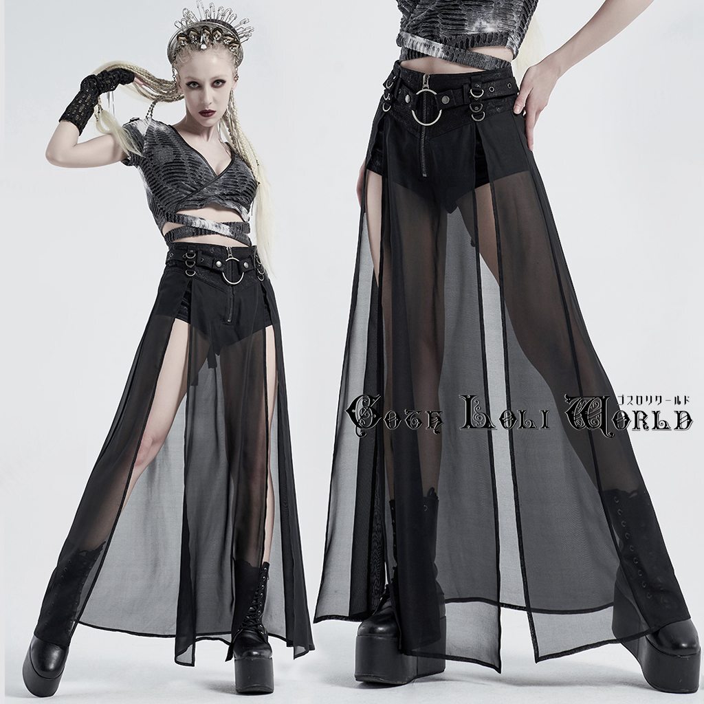 > WQ-494BK-M ゴスロリ ロングシースルースカート風 ショートパンツ デニム地 ゴスロリワールド ゴシック パンク ロック ビジュアル系 V系