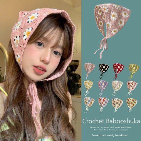 - トレンド バブーシュカ ヘアバンド クロシェ編み かぎ編み ヘッドアクセ ハット 帽子 ワンサイズ B