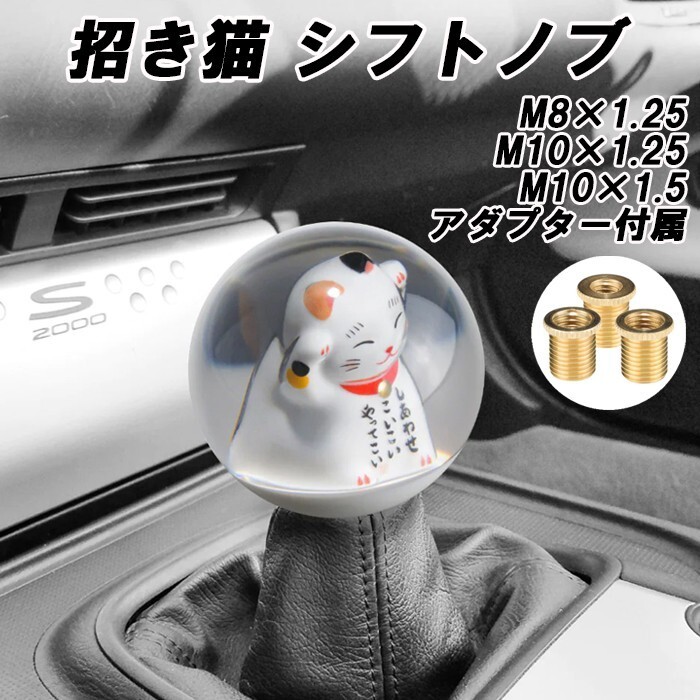- 丸形 シフトノブ 招き猫 まねきねこ まねき猫 ネコ 70mm アダプター付き おもしろ MT AT マニュアル オートマ