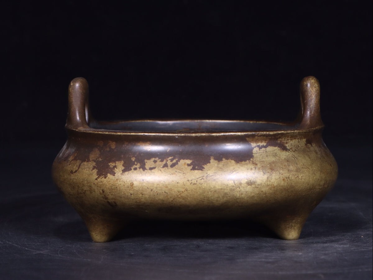 - 「大清順治辛丑中比丘超格虔造供佛 古銅彫 三足沖天耳老銅香炉」旧銅器 置物擺件 賞物 中国古美術 旧蔵出
