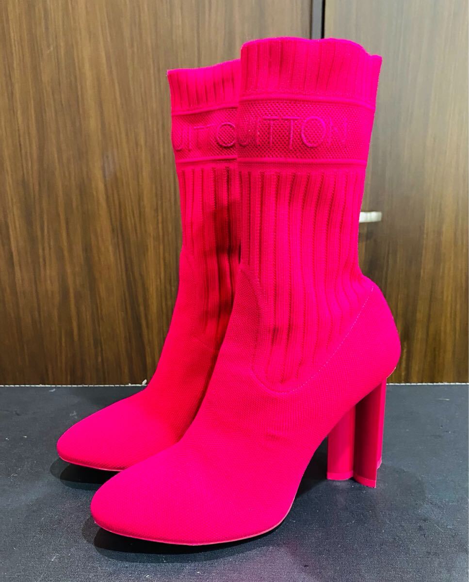 - 送料なし LOUIS VUITTON ルイヴィトン シルエットライン ブーツ ショートブーツ アンクルブーツ ソックスブーツ ロゴ ニット ピンク