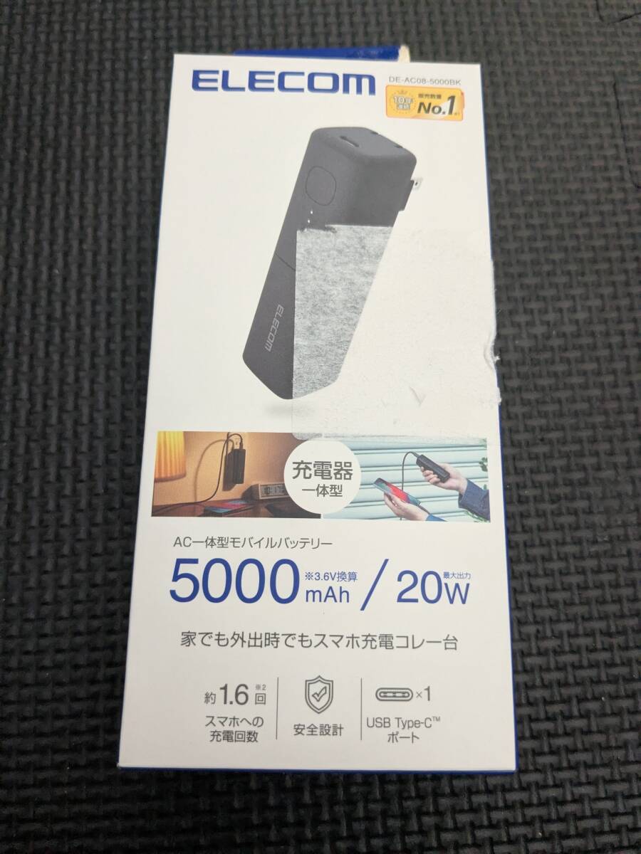 > ◎0709u1228 エレコム モバイルバッテリー 5000mAh AC一体型 コンセント 20W USB PD対応 Type-C 1ポート ブラック DE-AC08-5000BK