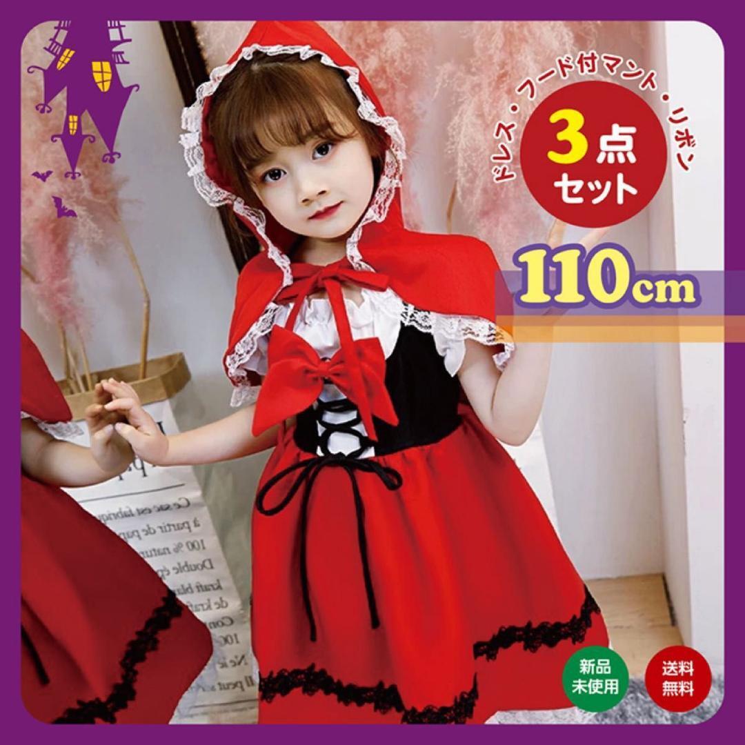 - 110 赤ずきん ハロウィン コスプレ 仮装 女の子 衣装 マント ワンピース パーティー リボン マント フード 子供 お子様 キッズ