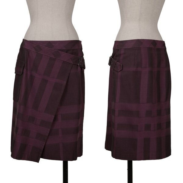 > バーバリーロンドンBURBERRY LONDON チェックジャガードコットンウールラップスカート 紫40