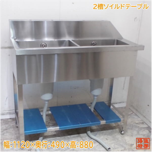 > ステンレス 2槽ソイルドテーブル 1120×490×880 食洗機用シンク 未使用厨房/25J0303Z
