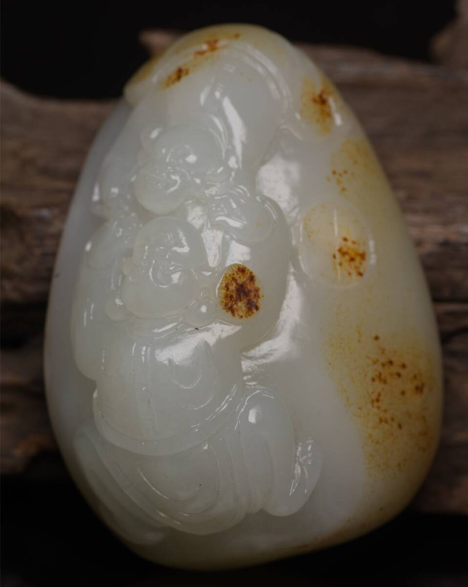 - 【超珍館蔵】和田玉製 細密彫 招財童子 置物 賞物 古賞物 古董品 古美術品 時代物 旧家蔵出 稀少珍蔵品