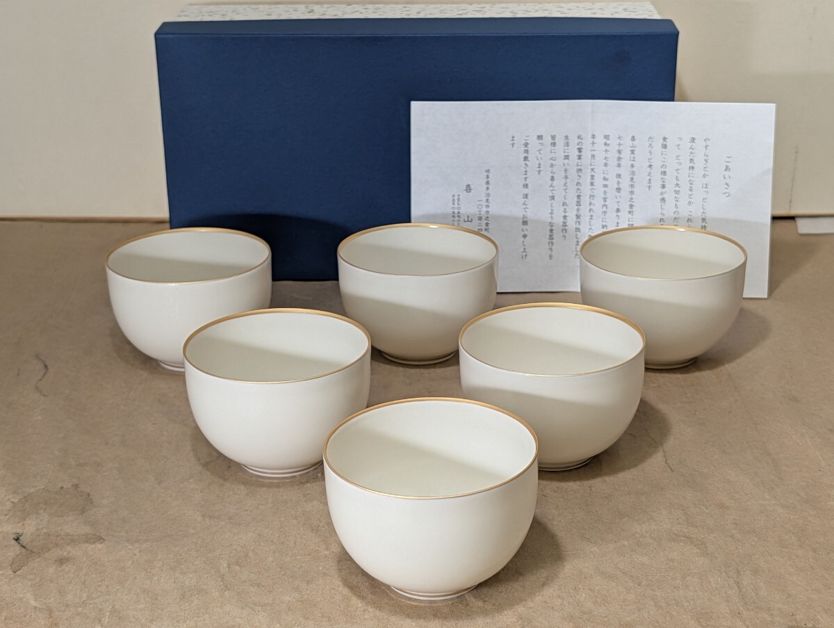 - 喜山窯 湯呑 6客 未使用箱入 〔まとめて取引がお得⇒追加送料無し〕/美濃焼/薄手/軽い/和食器/陶磁器/
