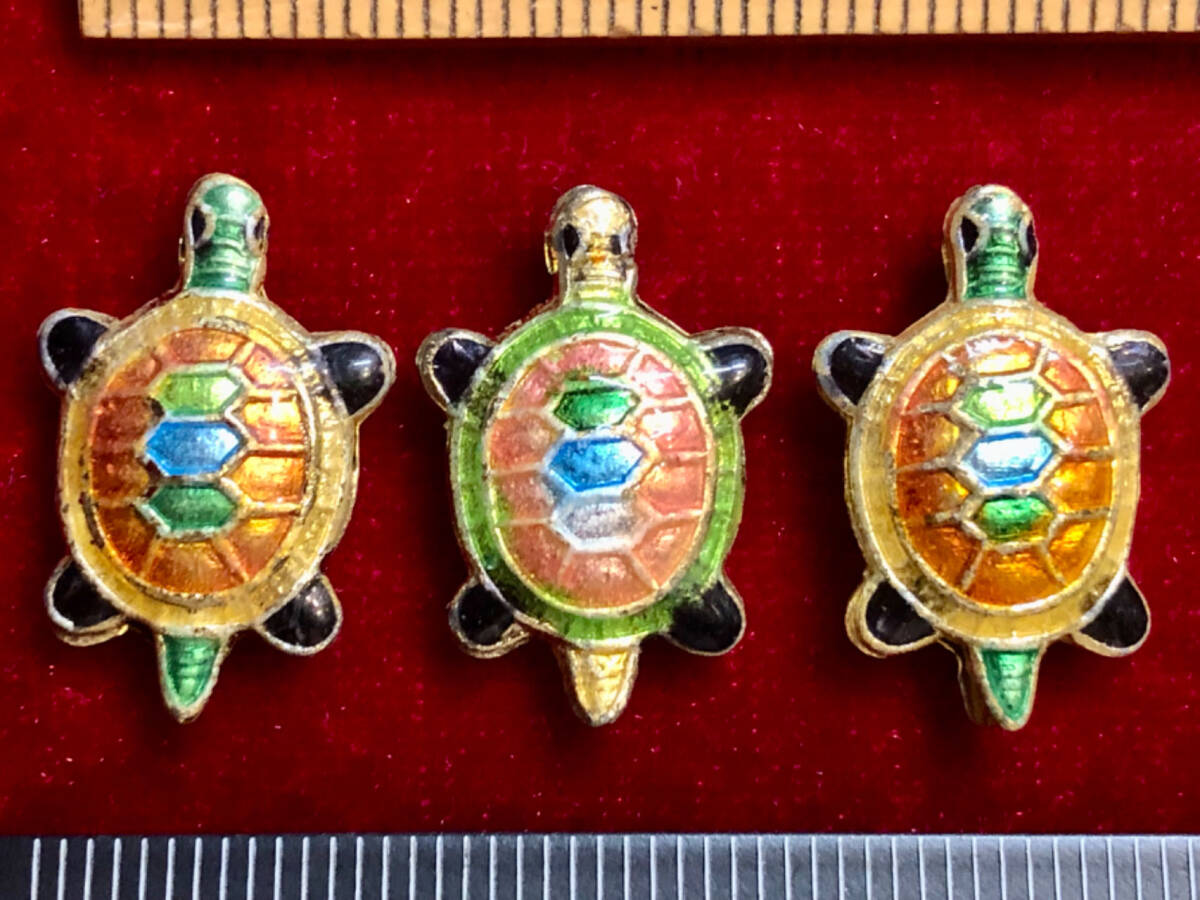 - ¶!¶ 有線七宝焼ワールド - 2色(3個)の亀ちゃんペンダントで1単位 ¶!¶ 金線に金緑と橙色釉亀 手作り 手芸 工芸 インテリア ペンダント
