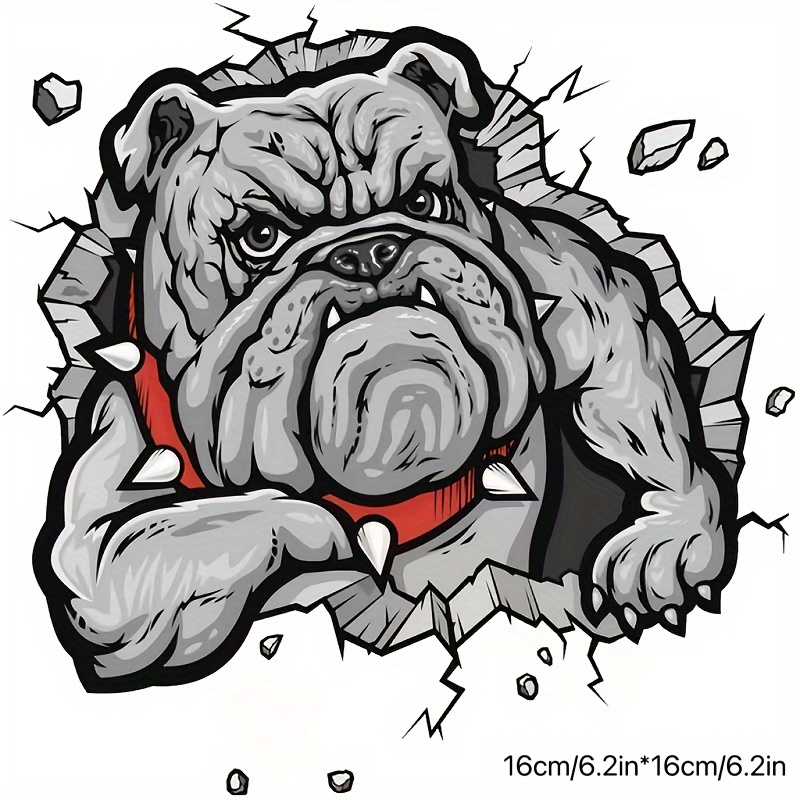 > ステッカー 壁から飛び出す犬 ブルドッグ アニマル 車用 16cm グレー イラスト イヌ 動物 ノートパソコン ビニール シール 2D いぬ t8549