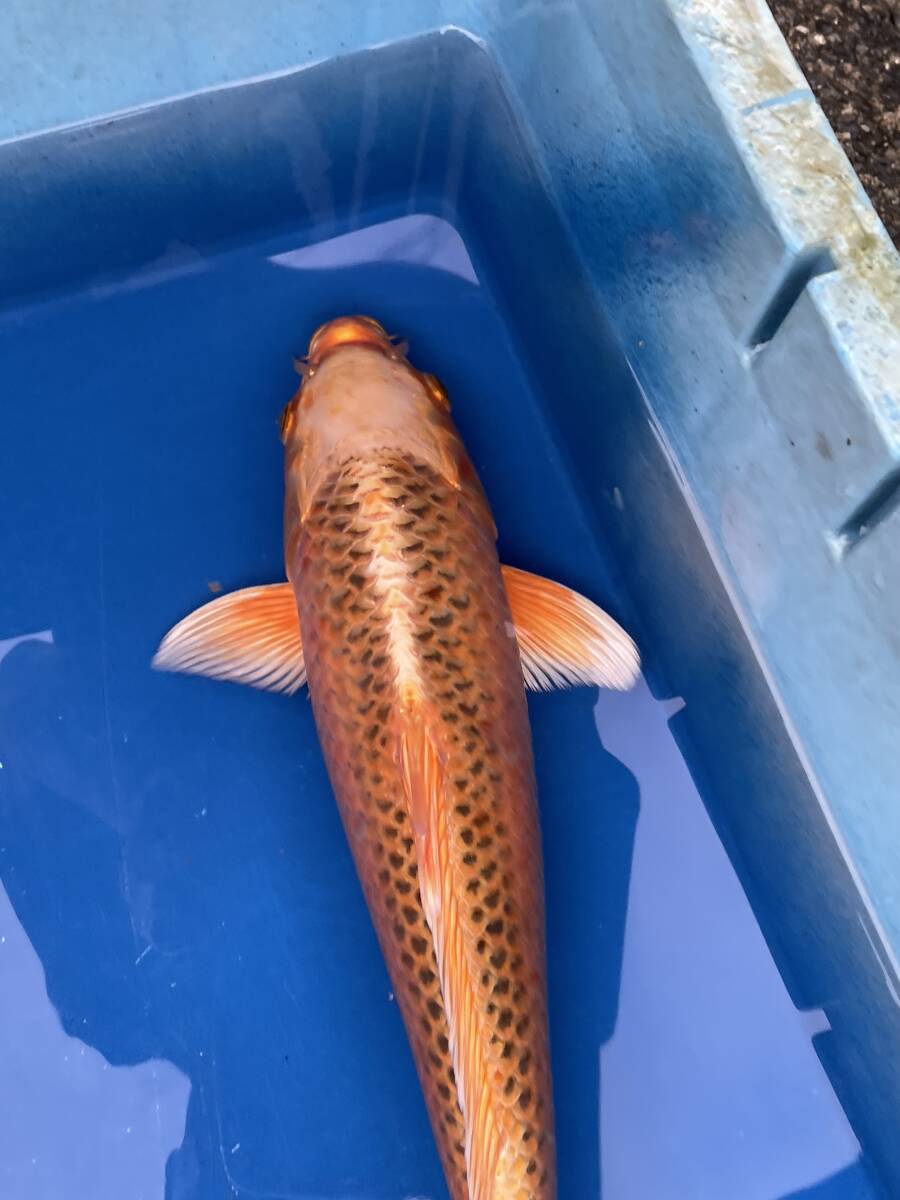 - ★特選★令和6年産 面迫系のピッカピカで綺麗なふく鱗がいいオレンジ黄金兜33cm程度メス