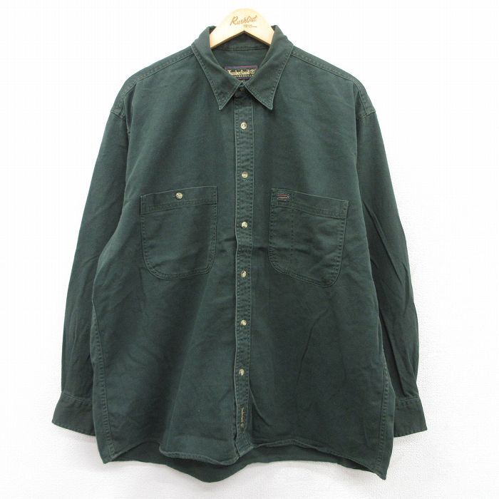 - XL/古着 ティンバーランド 長袖 ブランド シャツ メンズ 90s 大きいサイズ コットン 濃緑 グリーン 25sep09 中古 トップス