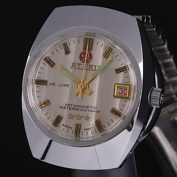 - アテク 手巻き デラックス カットガラス デイト シルバー文字盤 メンズ腕時計 YSD
