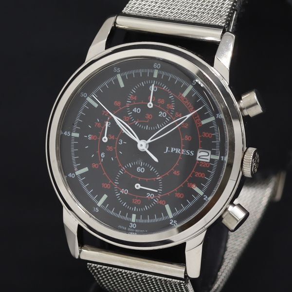 - 稼動 QZ 良品 定価約30000円 J.PRESS 0510-H00656 黒文字盤 デイト クロノ レディース腕時計 KRK 2000000 NSK