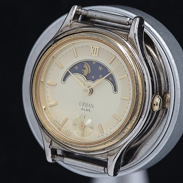 - 稼動 良品 トップのみ セイコー QZ アルバ アーバン V806-0150 ムーンフェイズ ゴールド文字盤 メンズ/レディース腕時計 2000000 NSK INU
