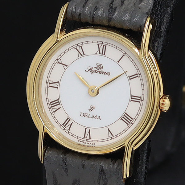 > 稼働 良品 デルマ QZ 667923 ホワイト文字盤 ラウンド ゴールドベゼル レディース腕時計 2000000 NSK OMI