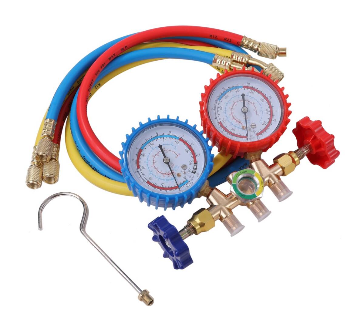 > マニホールド ゲージ エアコン ガスチャージ 対応 冷媒 R134a R404A R-12 R122 フック カーエアコン 車 ルーム 補充 メンテナンス パーツ