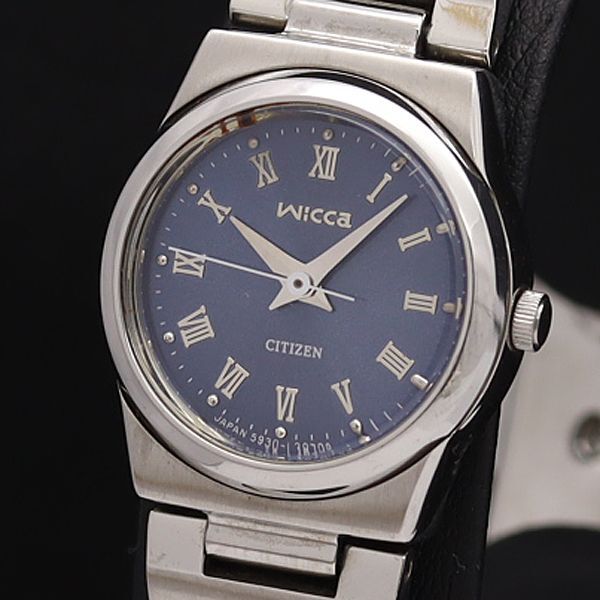 - 稼働 良品 シチズン QZ 5930-L20735 ウィッカ ネイビー文字盤 ローマン ラウンド レディース腕時計 SMD