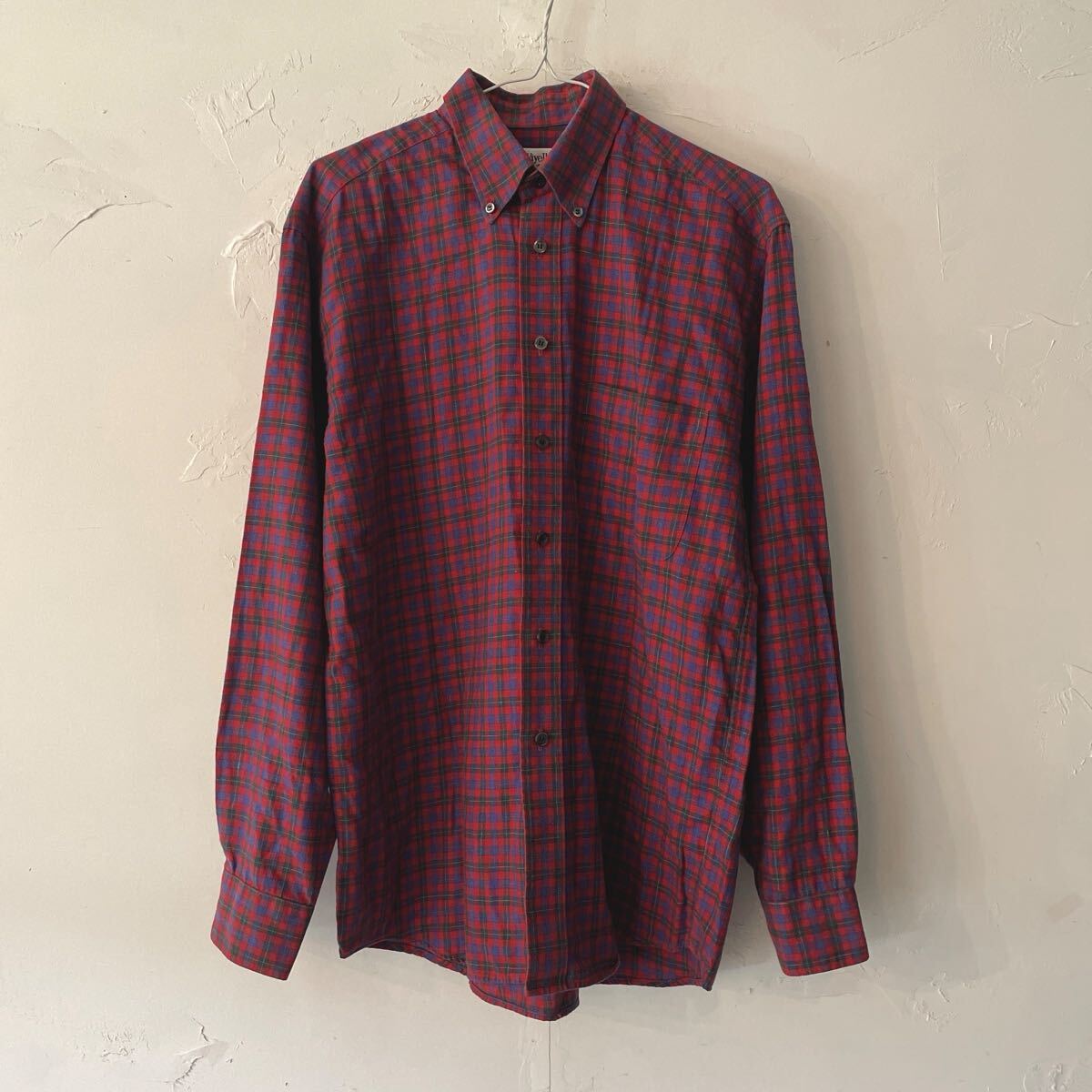 > ビンテージ viyella ヴィエラ ボタンダウン ウール コットン 長袖シャツ 5 ヴィンテージ チェック赤色 メンズ レディース 古着 ビエラ