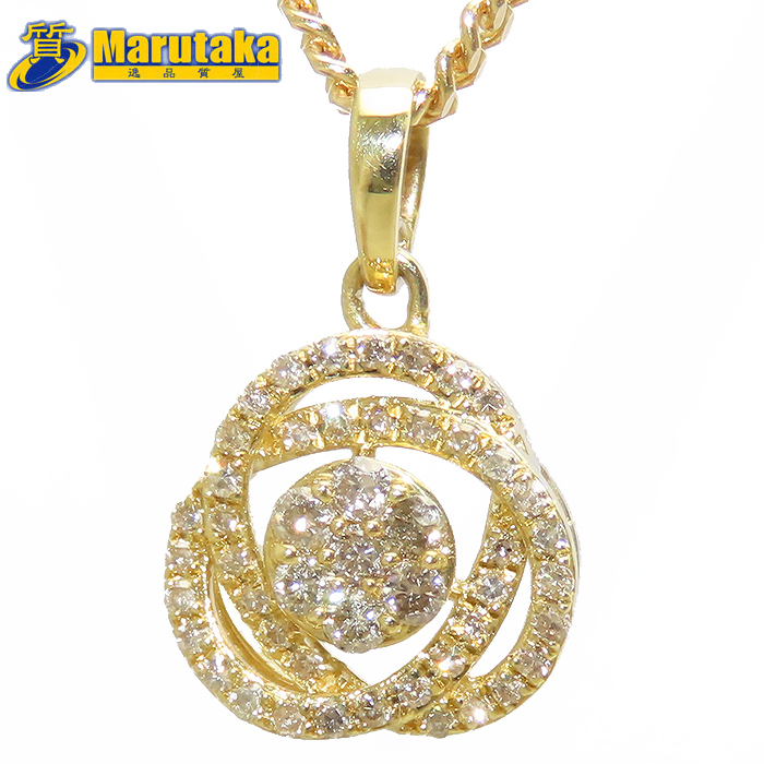 > ダイヤモンド ネックレス 45cm K18 YG 750 Au 長さ調節 イエローゴールド ペンダント トップ 喜平 2面 ダイア 逸品質屋 尼崎