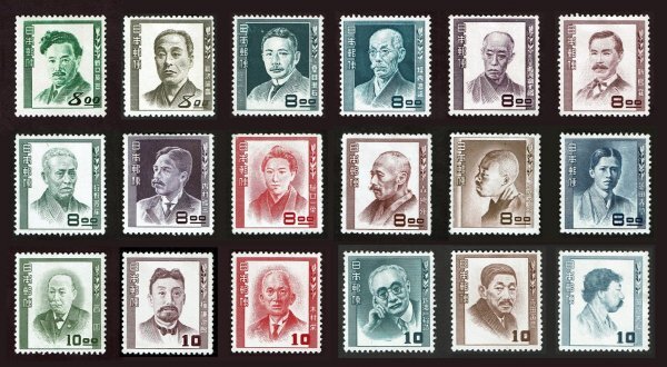 - P264■【糊落ち】1949年~ 文化人切手 全18種完■未使用・良好
