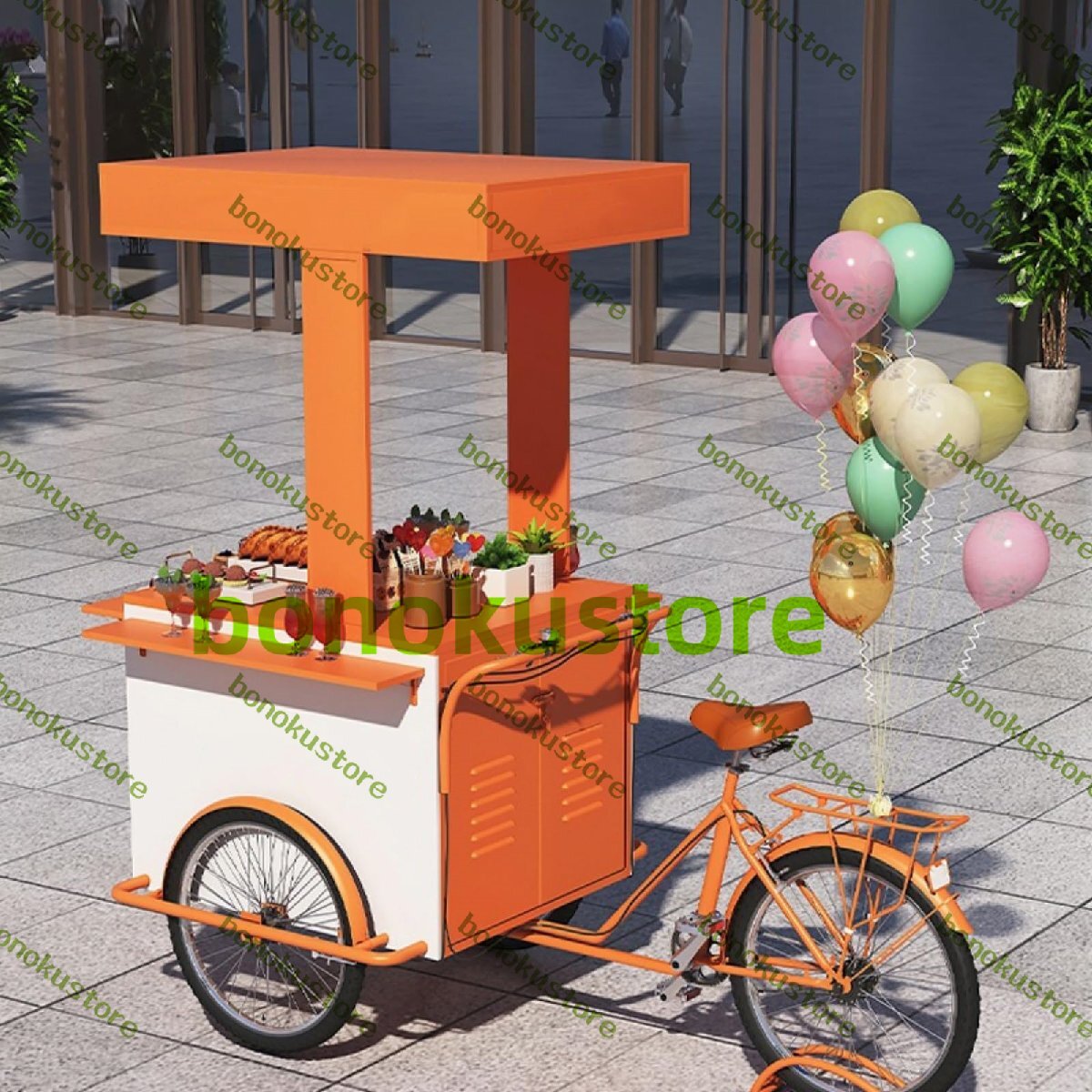 - 大型フードバイクカート 三輪車フードカート フードベンディングカート 屋台フードベンディング三輪車 鉄製フードドリンクディ オレンジ