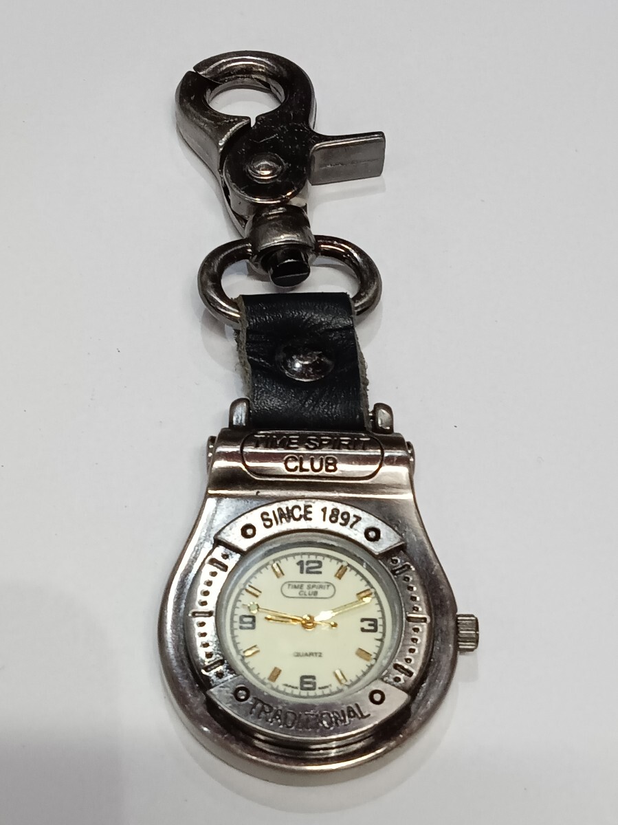 - TIME SPIRIT CLUB キーホルダー 時計 懐中時計 レザー ブラック クォーツ 電池の為動作未確認③