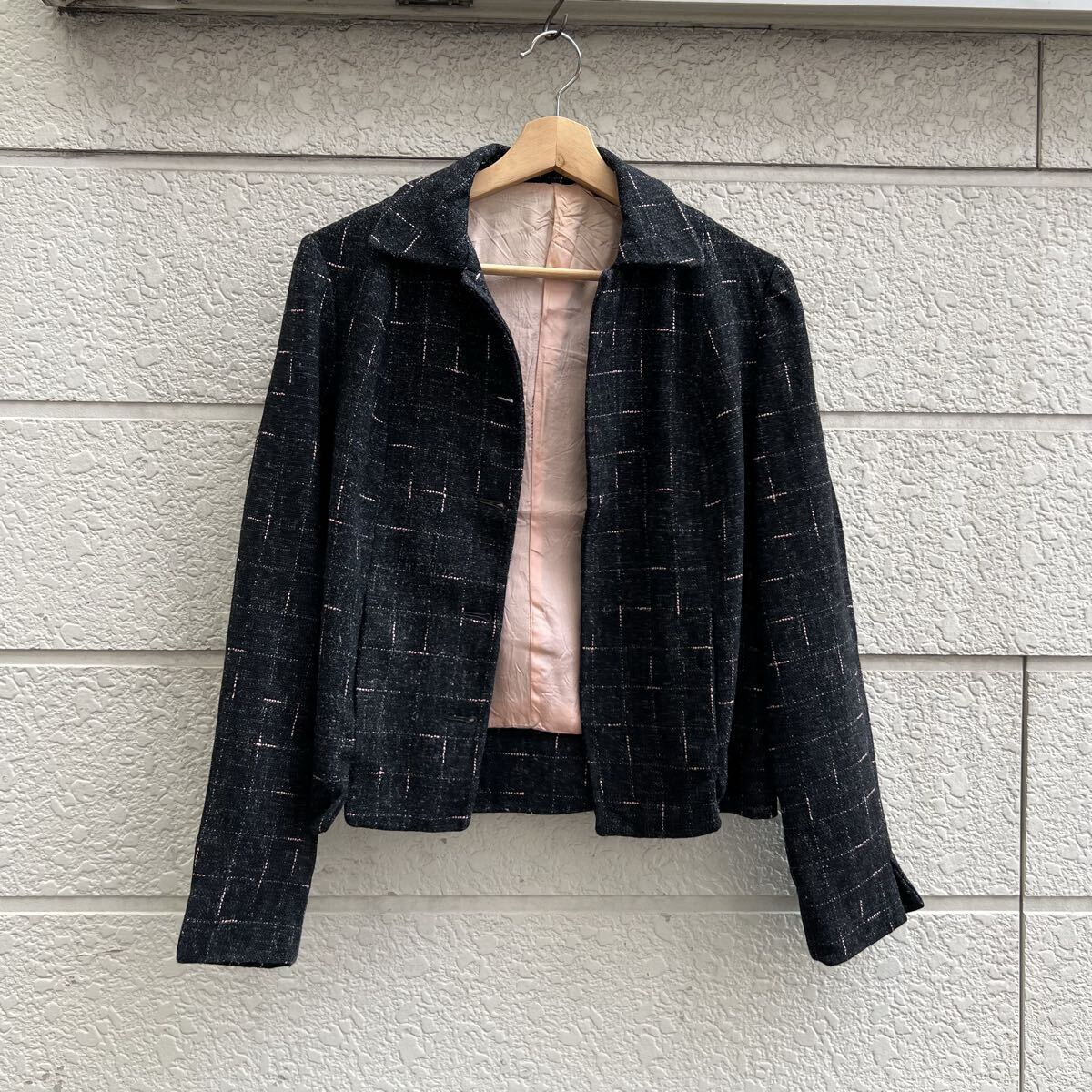 - USED USA古着 ブラック ショート丈 ジャケット ウール 黒ピン カスリ柄 50s スタイル 黒 アメリカ古着 vintage ヴィンテージ