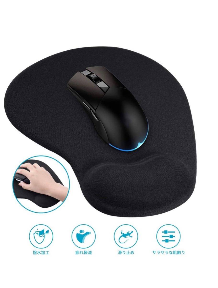 - マウスパッド ゲーミング人間工学 リストレスト 低反発 手首 疲労軽減 滑り止め ブラック 黒
