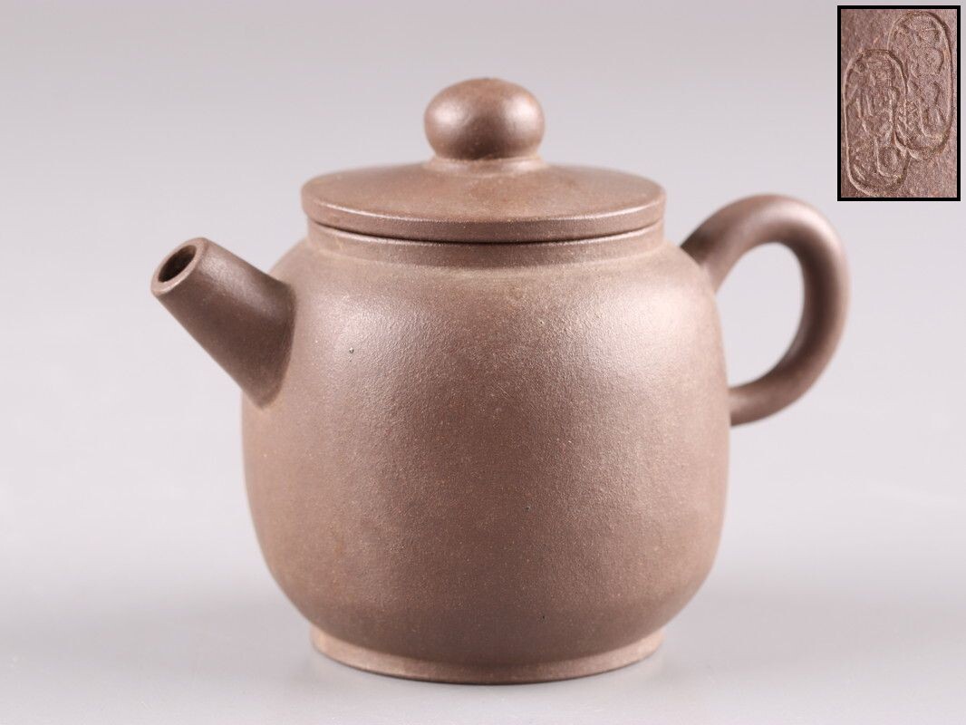- 中国古玩 唐物 煎茶道具 朱泥 紫泥 紫砂壷 茶壷 急須 福記 在印 時代物 極上品 初だし品 D4361