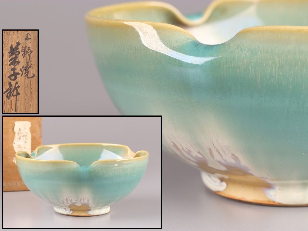 - 茶道具 上野焼 緑青釉 菓子鉢 鉢 時代物 極上品 初だし品 D4348