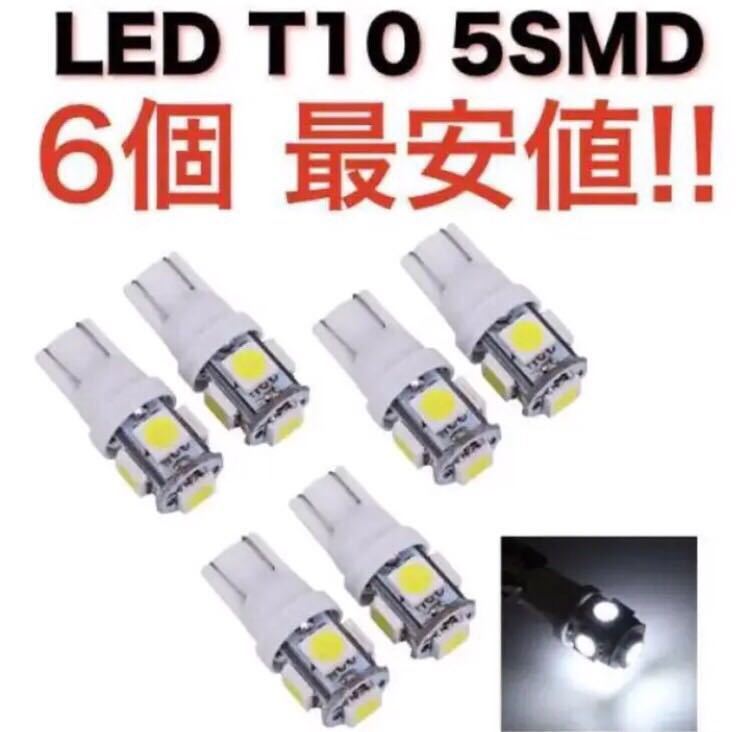 - 白6個 ホワイト 5連SMD 6個セット 用途多数 LEDバルブ T10 爆光