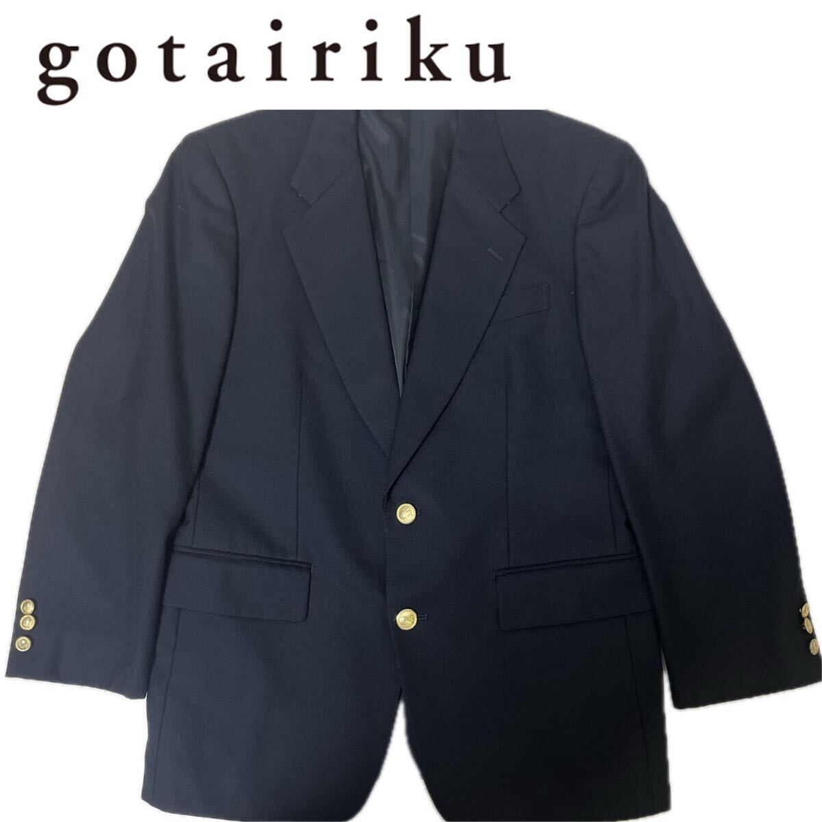 > 【美品 総裏地 金ボタン】五大陸 紺 ブレザー 2B シングル テーラード ジャケット gotairiku ゴタイリク サイズA4 ネイビー オンワード樫山