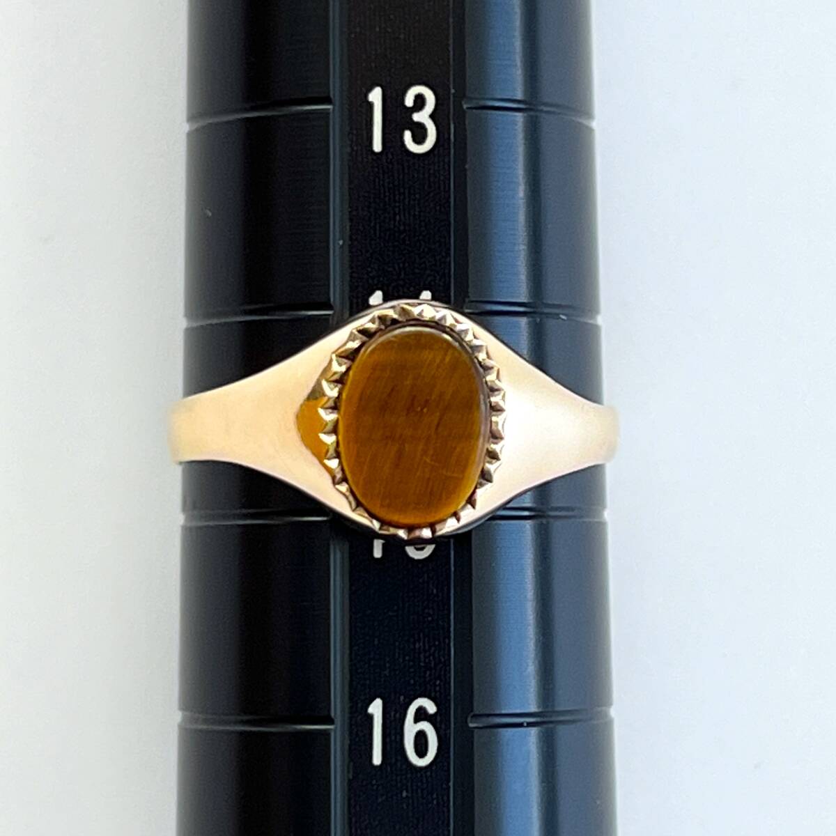 > 【Vintage】シグネットリング 9金 Gold ゴールド 375 9ct タイガーアイ Tiger Eye 英国 イギリス製 MADE IN UK 14.5号 1.5g 1980年