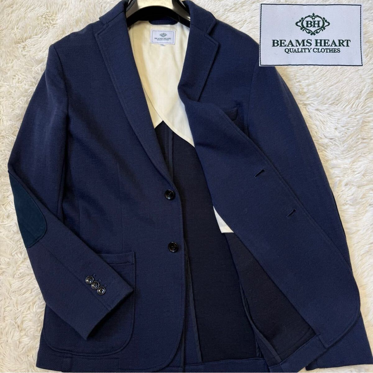 - 極美品/L相当 ビームスハート BEAMS HEART テーラードジャケット ヘリンボーン エルボーパッチ アンコン ストレッチ 伸縮性 ネイビー 紺