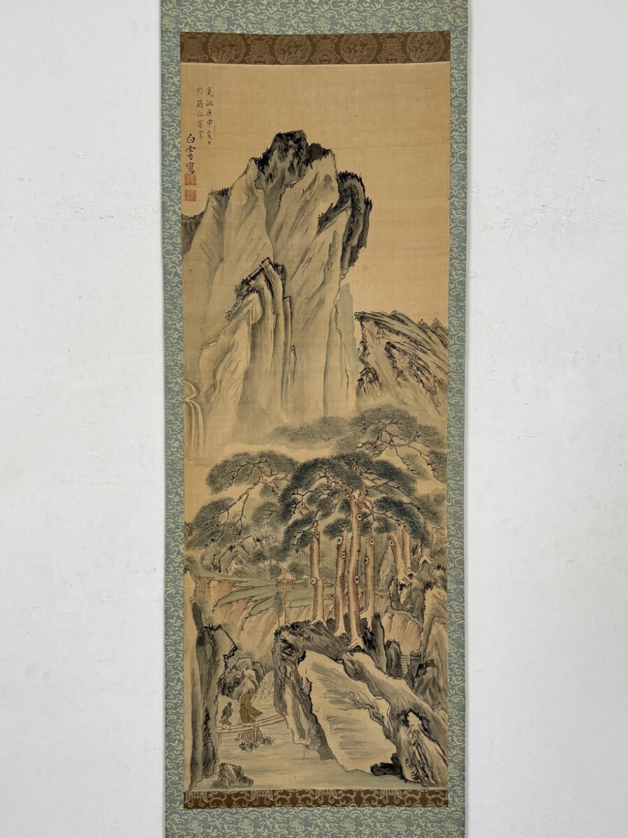 - 【真作】掛軸「僧白雲 青緑山水図」寛政12年37歳 浄土宗 画僧『集古十種』編纂 絵画