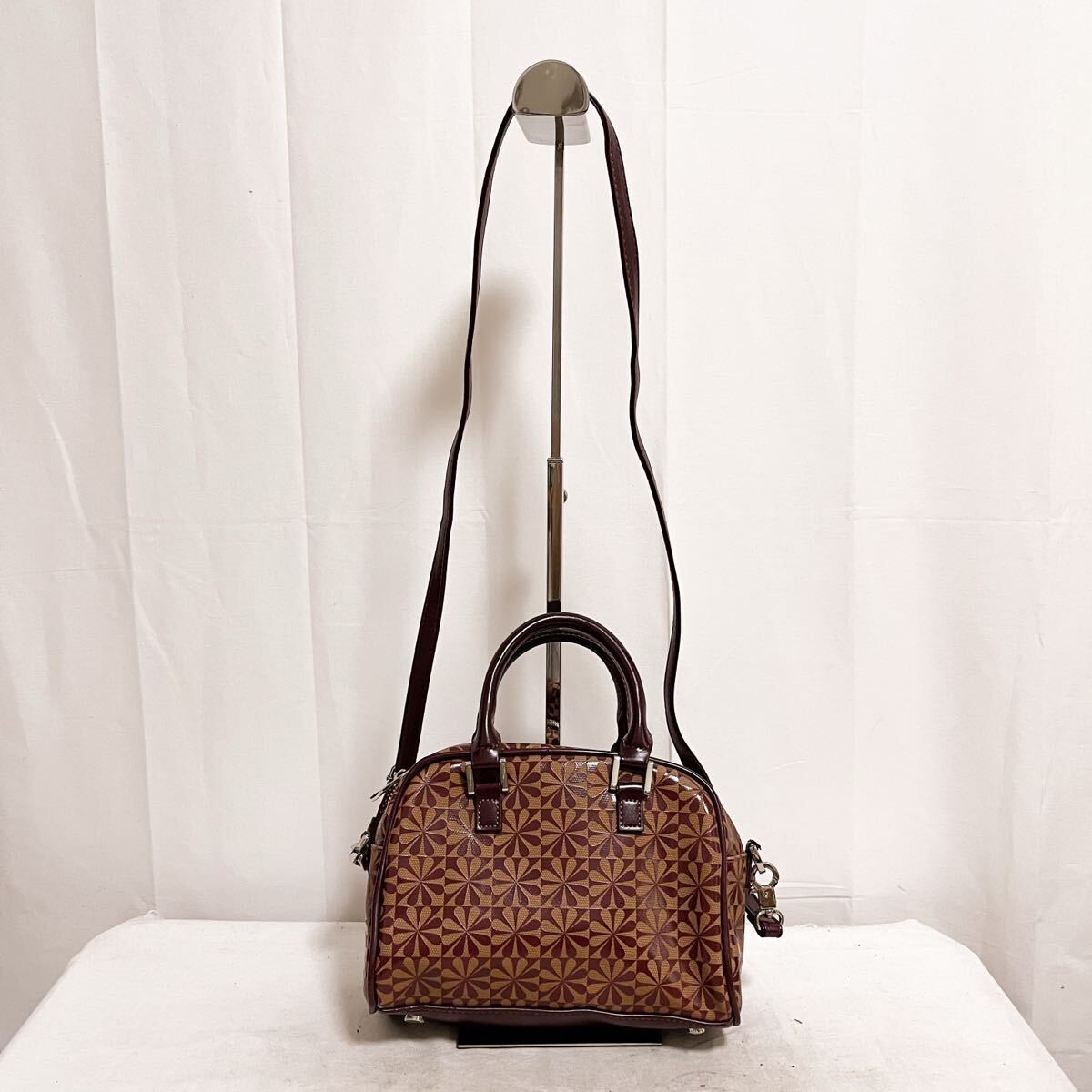 - 和837★ Casselini キャセリーニ ミニバッグ ハンドバッグ ショルダーバッグ 総柄 ベージュ ブラウン レディース