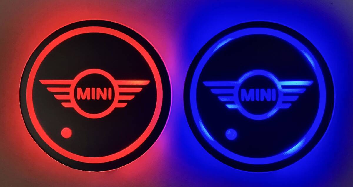 > ミニ車簡単カスタム 光るLEDコースター 2個セット ドリンクホルダー 車内装アクセサリー MINI/ミニクーパー