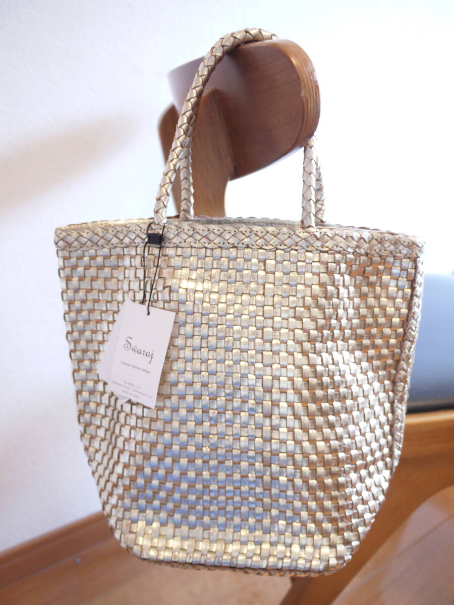 - Swaraj スワラージ 手編みメッシュレザートートバッグ ゴールド 新品タグ付き