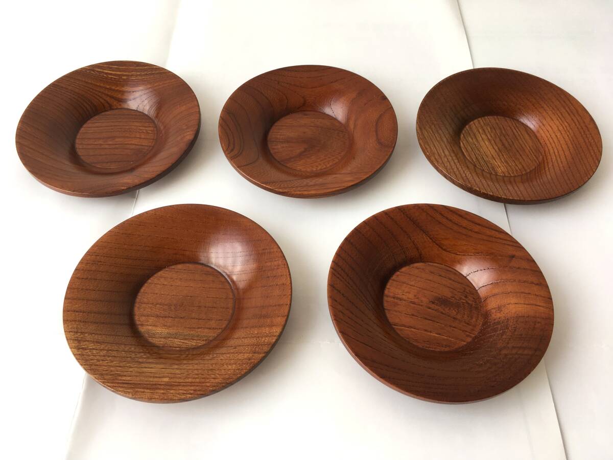- 未使用品 茶托 菓子皿 5枚セット 天然木 塗り 木製 コースター 煎茶道具