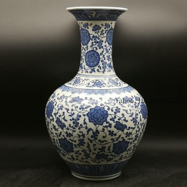 - 清乾隆青花纏枝蓮紋賞瓶 景徳鎮 陶磁器 装飾品 現代工芸品美術品 置物
