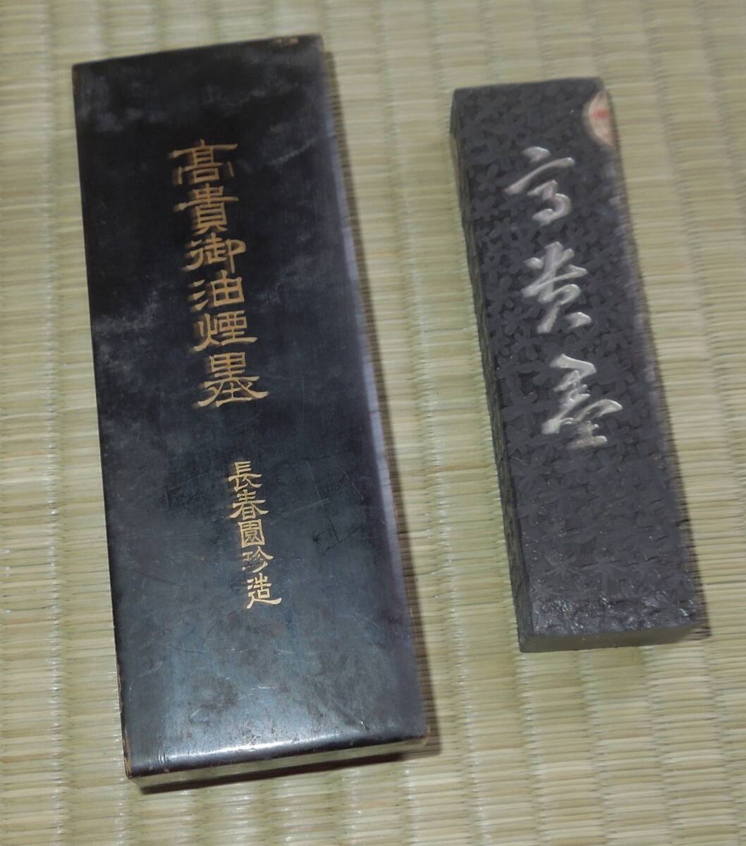 - 書道 墨 古墨 極製 富貴 御油煙墨 長春園 約63g