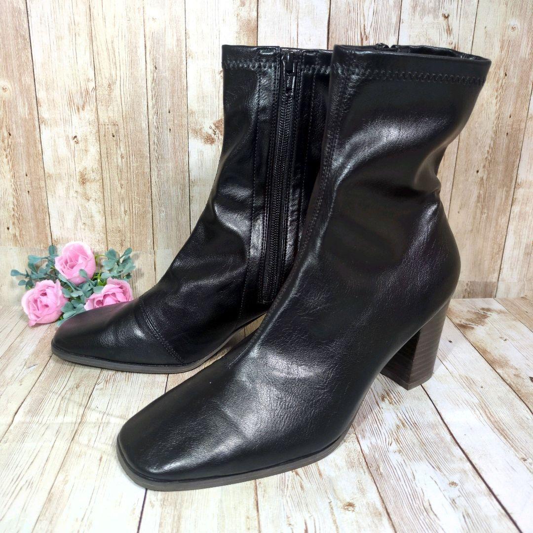 - 【tukn.】トゥクン☆感動ブーツ☆Lサイズ☆ヒールブーツ☆スクエアトゥ☆黒☆ブラック☆ショートブーツ☆サイドジップ☆レディース靴