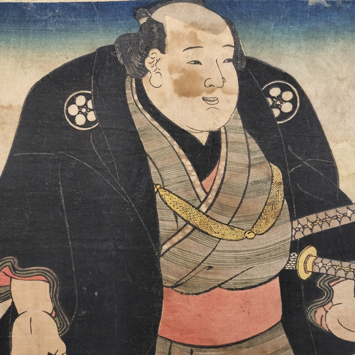 - 力士!江戸期/真作 歌川国貞「岩見潟丈右衛門」本物浮世絵木版画 相撲絵 武者絵 錦絵 大判 裏打ち