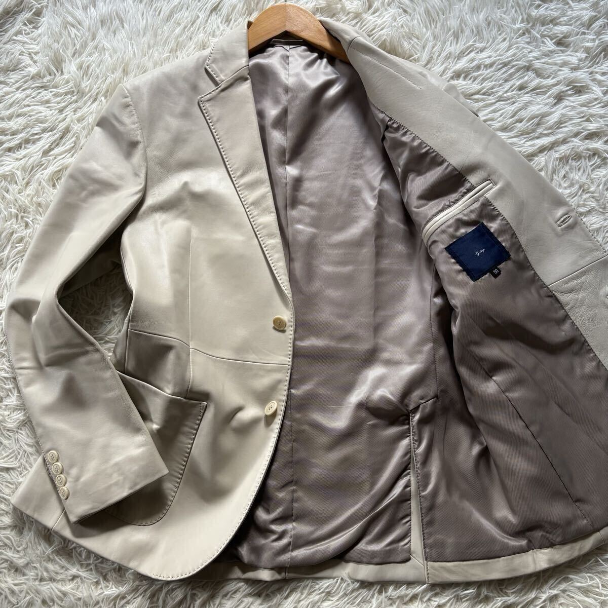 > ◎極美品/希少色/XL相当◎g-stage【幻の逸品】ジーステージ テーラードジャケット 羊革 ラムレザー 本革 シープスキン ホワイト 秋冬 LL 50