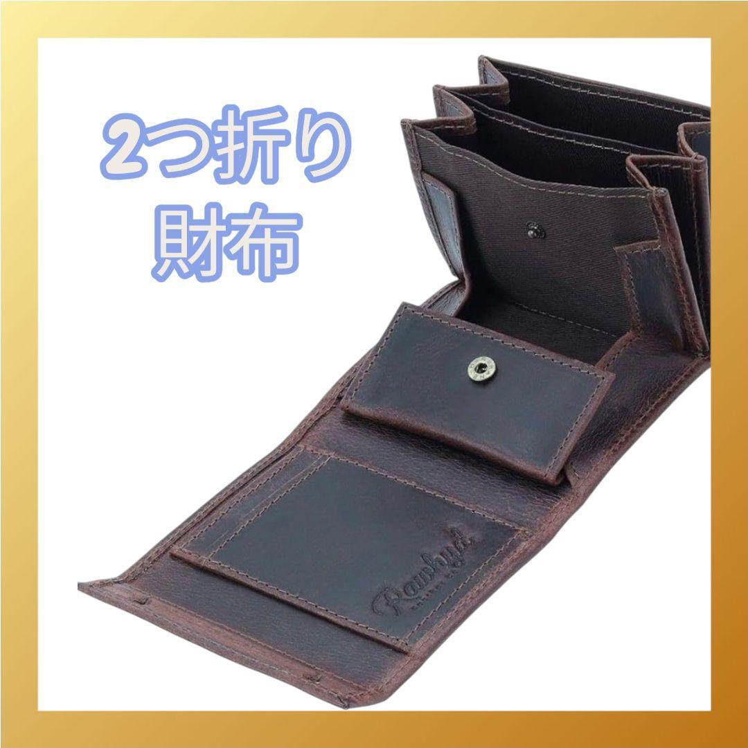 - メンズ 折りたたみ 小銭 カード モダン ダークブラウン 二つ折り財布 小銭入れ