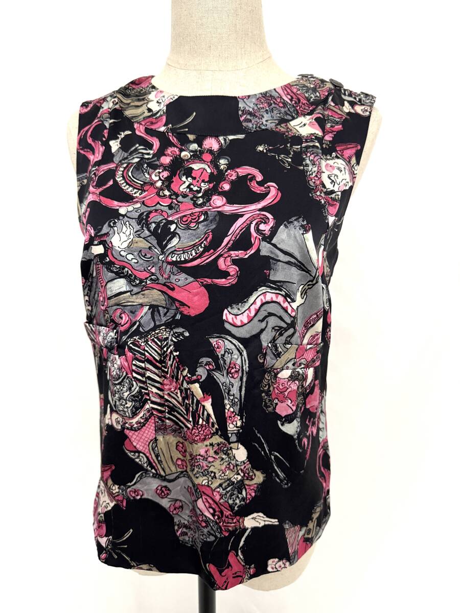 > 7I1413【本物保証】シャネル ノースリーブ シャツ ブラウス 上海 コレクション シルク 100% ロゴ ココマーク ボタン P38741 V28120 CHANEL